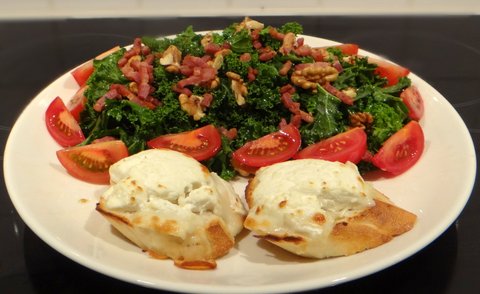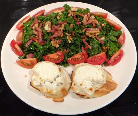 Kale Salad with Grilled Goat Cheese, Bacon and Walnuts (Salade de Chèvre Chaud aux Lardons)