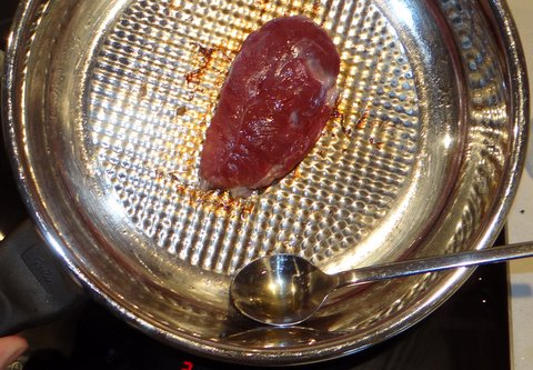 I was intrigued by Conor’s Canard à l’Orange post. He cooks the duck breast on the skin side over low heat for 30-40 minutes to render the fat out of it, while I always do this as quickly as possible over high heat. My theory behind this was that this would lead to less overcooking of the duck meat, but since Conor knows his business I thought I needed to give his method a try. Empirical evidence is better than theoretical speculations. Or in other words, the proof of the pudding duck is in the eating.