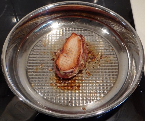 High & fast sear on the left, low & slow on the right. Both were good, but there was a clear difference. Not only the skin was very different, but also the doneness. The high & fast was medium rare, but the low & slow turned out medium rather than medium rare. The duck meat had been cooked to medium during the fat rendering process. Kees preferred the medium duck breast with the low & slow skin, where I always prefer medium rare and that was also true in this case. The low & slow has a thinner skin that is more crispy. The latter advantage is only maintained when you finish cooking the duck breast in the oven (unlike I did).
