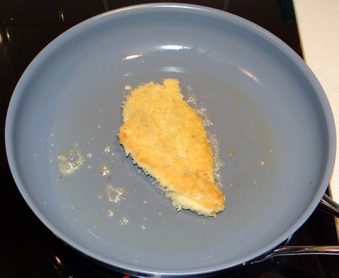 Heat clarified butter in a non-stick frying pan over high heat. Add the breaded chicken breast and lower the heat to medium.