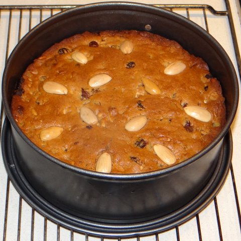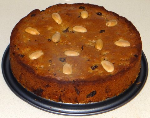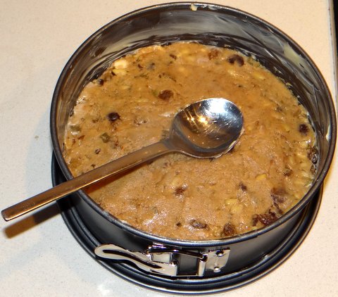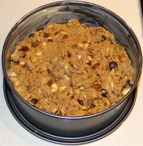 Note added February 10, 2013: I have since made Certosino again, but using baking powder rather than baking soda and adding it together with the flour rather than in the beginning. The picture of the finished certosino in this recipe are now from that second time I made it and I have also corrected the instructions below accordingly. This is supposed to be a dense cake, but it should not look collapsed as happened when I used baking soda and added it at the same time as the spices.
