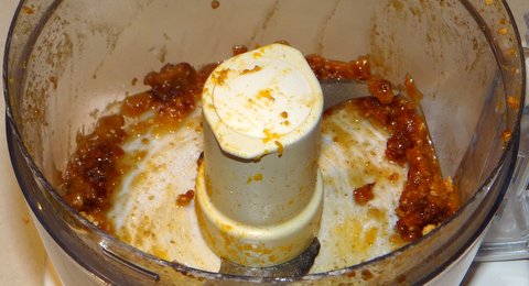 Put the mostarda and the amaretti in the food processor and process until fine.
