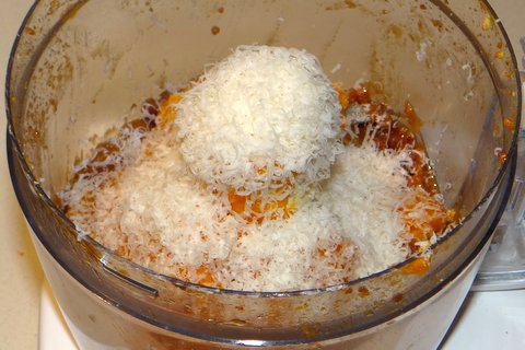 Add the pumpkin puree and a generous amount of freshly grated parmigiano.