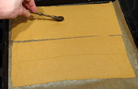 I still used a pastry wheel to cut the dough into crackers before baking.
