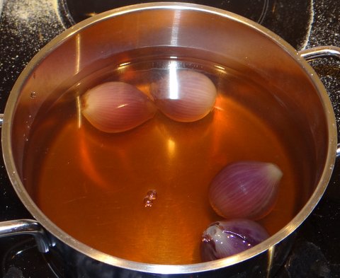 Plunge the small onions into boiling water for 20 to 30 seconds.