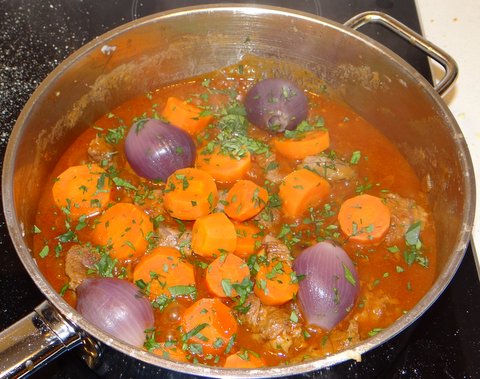 This is great with most Italian reds, especially from the south when they have good acidity. The grapes are “stewed” (stufato) in the sun there, and such wines pair well with stews. With this stew it is nice if the body of the wine is balanced with some nice acidity. A cirò (from the gaglioppo grape indigenous to Calabria) would be perfect.