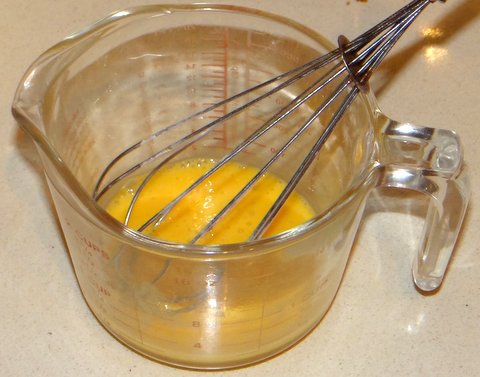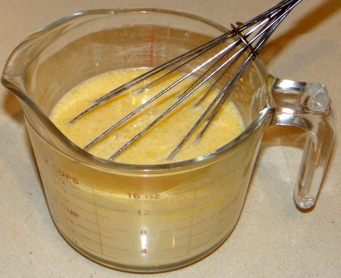 Add 240 ml milk and 55 grams melted butter, and whisk to mix.