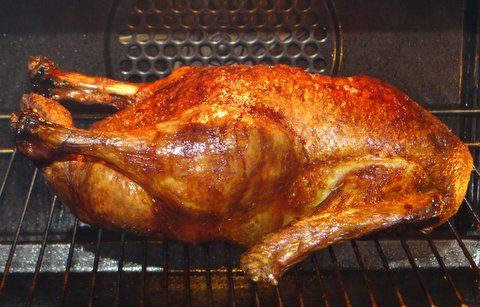Turn the duck every 20-25 minutes while it is roasting.