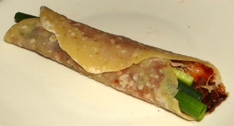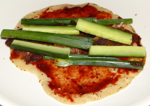 Then add some duck, cucumber and scallions.