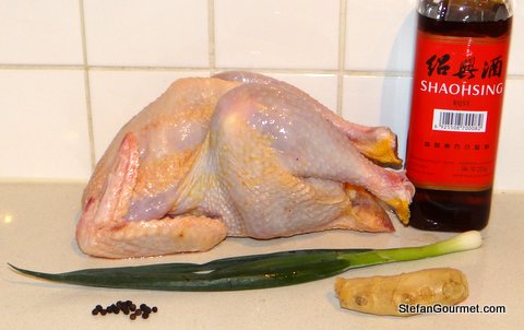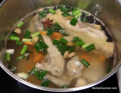 Add scallion, ginger, carrot, star anise, and rice wine. Bring to a boil.