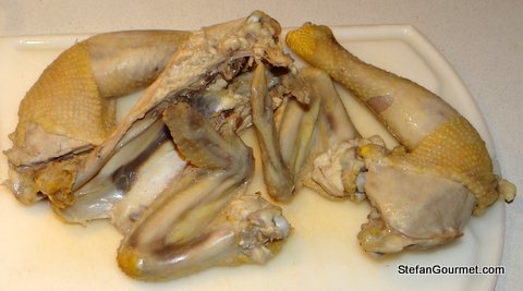 Most people associate Chicken Ramen with instant noodles in a foam cup. You just need to add boiling water and it’s done. It doesn’t taste bad, but it is very different from the chicken ramen that I prepared today. I made everything from scratch, including the chicken broth and the noodles. Instead of cooking the chicken sous-vide like I did in my previous post about chicken ramen, I wanted to show you how you can approach the same result by cooking the chicken at a low temperature (between 65C and 70C or between 150F and 160F) and then taking the chicken meat off the bones and finish making the broth Making ramen noodles from scratch is just like making fresh Italian noodles, with the exception that baking soda is added to make the noodles alkaline (i.e. the opposite of acidic). This will give them a firmer texture when they are cooked in the broth.