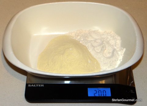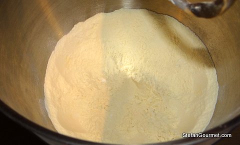 In Japan 1 part low-gluten flour is used to 2 parts high-gluten flour, and so I did as well, using Italian flours because that is what I have.