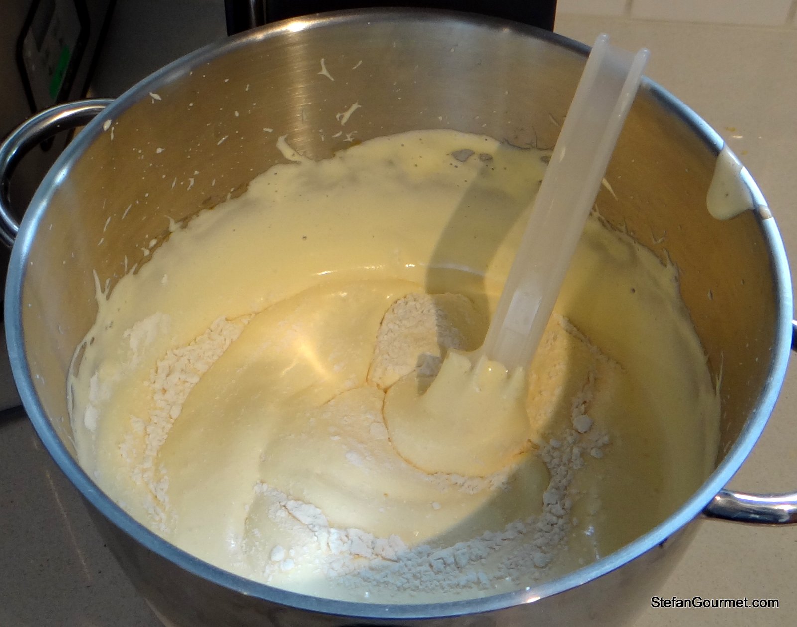 Very gently fold in the flour, keeping as much air as possible in the batter.
