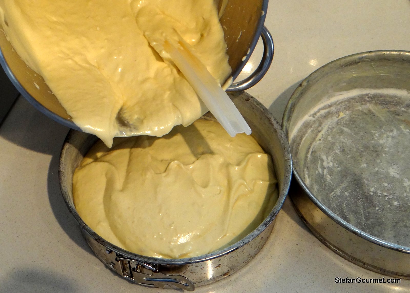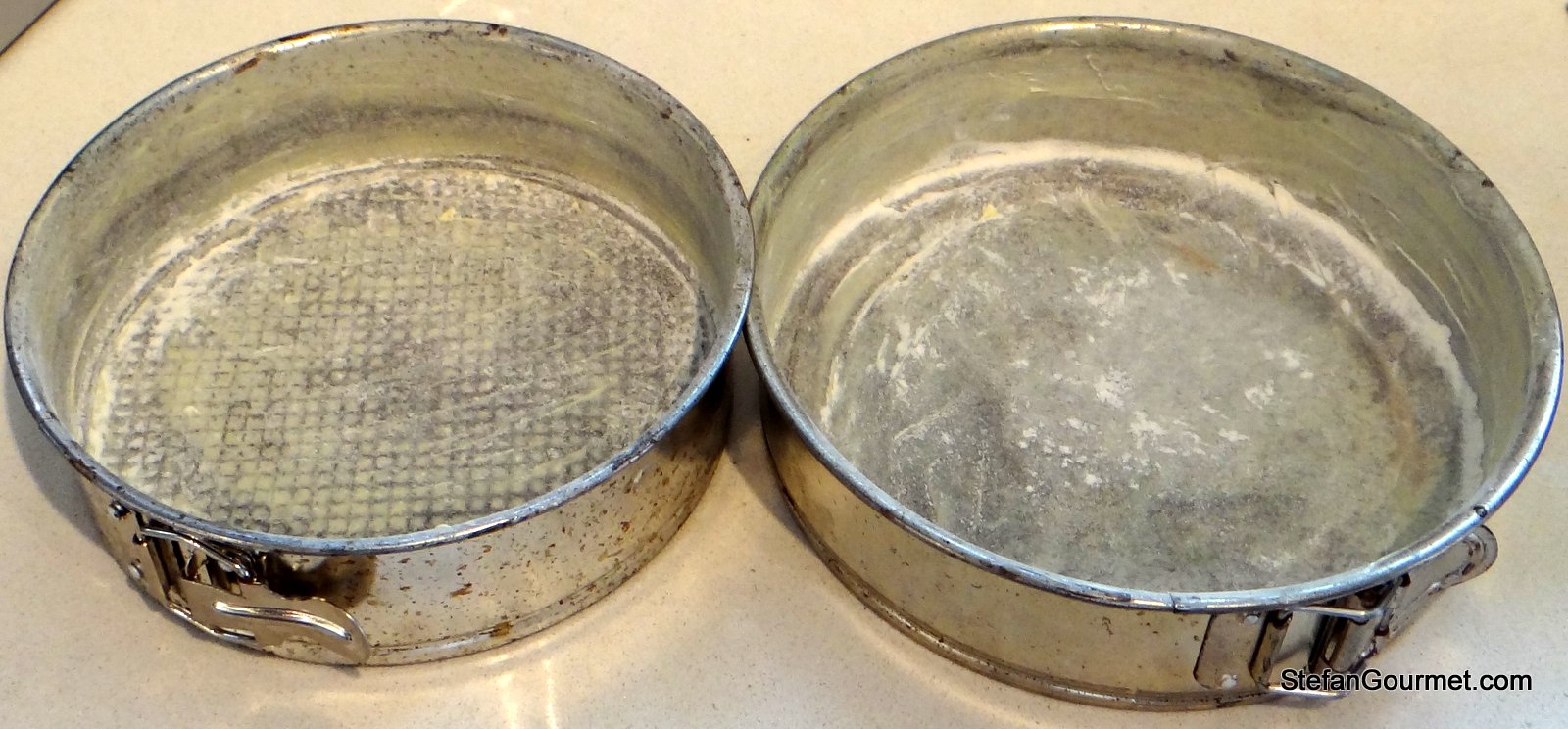 Butter two 22 cm (9″) springform pans and dus them with flour.