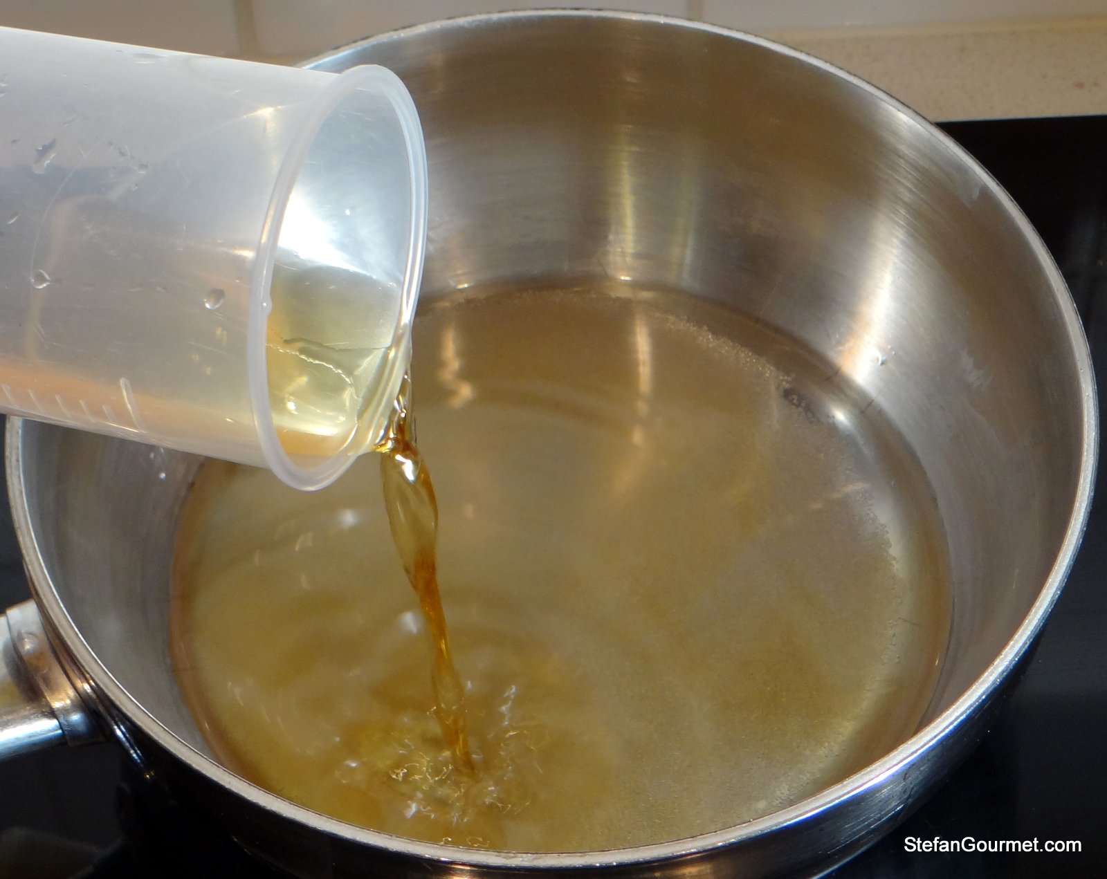 Meanwhile, combine 100 ml water, 50 ml Cointreau or Grand Marnier and 50 grams sugar in a saucepan to make the syrup.