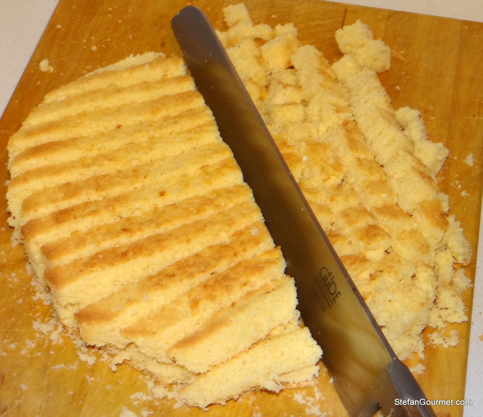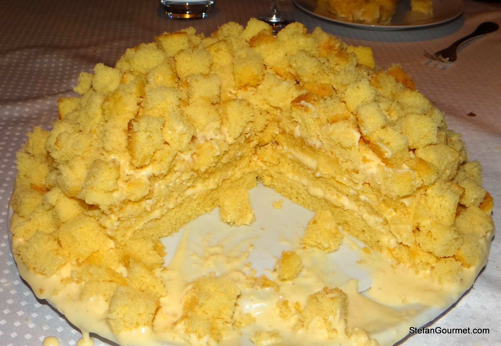 You can probably do a better job than I did in getting rid of all of the brown crust. Your torta mimosa will look prettier if you do.