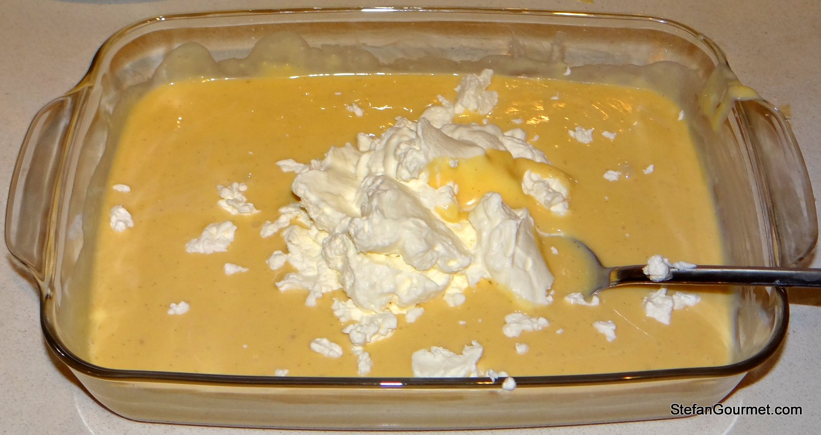 Add most of the whipped cream to the pastry cream, reserving about 6 tablespoons.