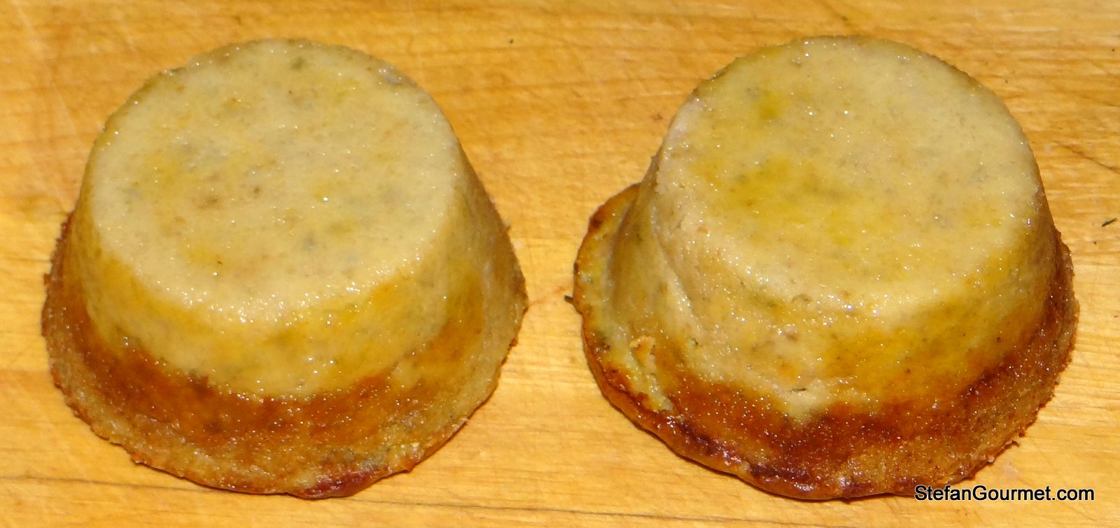 Bake for 25-30 minutes at 180C/350F until a toothpick inserted in the center comes out clean. The sformatini will rise, but they will collapse pretty soon when taken out of the oven.