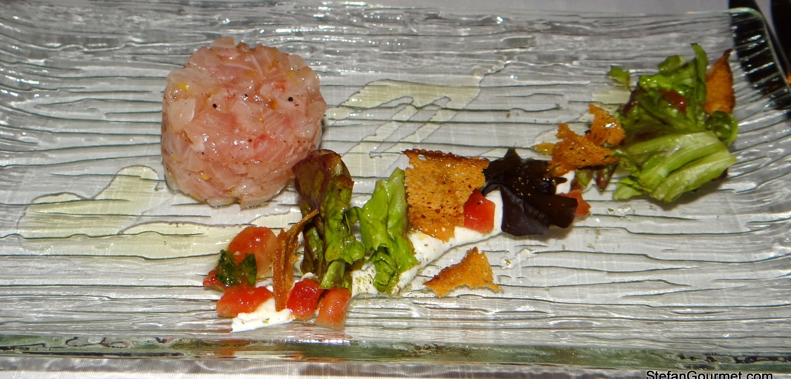 The amuse bouche is some tuna “sott’olio” served with tomatoes and olives and is a bit dry.