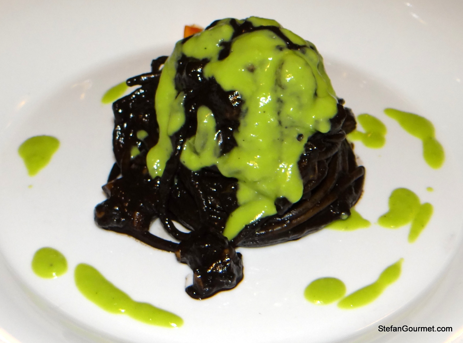 The second primo is spaghetti with squid ink and pea puree. The combination is nice, but there could have been a bit more of the pea puree. This is the first time that I remember having squid ink spaghetti that was actually tasty. The ink wasn’t (only) in the spaghetti, but also in the sauce. It had a fresher taste. 8/10