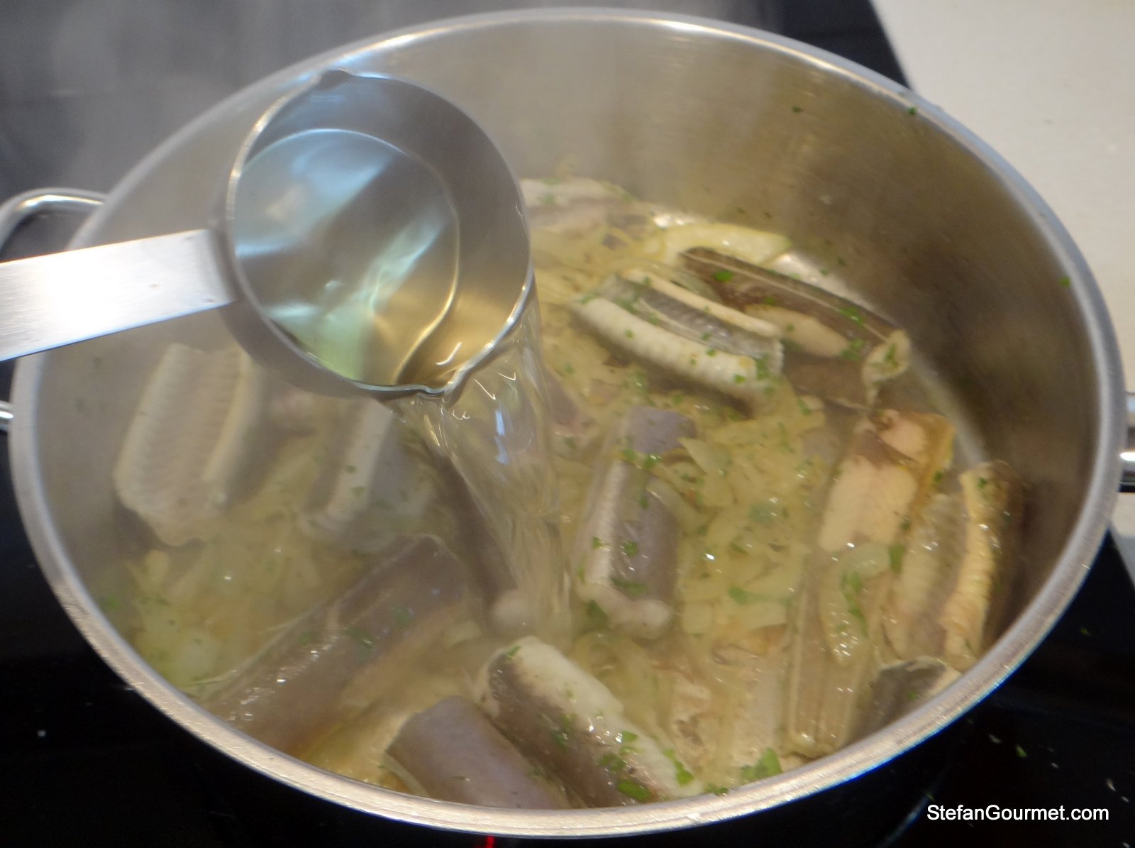 Lower the heat to a simmer. Allow the eel to simmer over low heat, partially covered, for about 30 minutes.