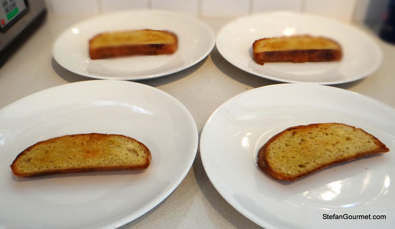 4 slices (Italian) white bread, lightly brushed with extra virgin olive oil and toasted