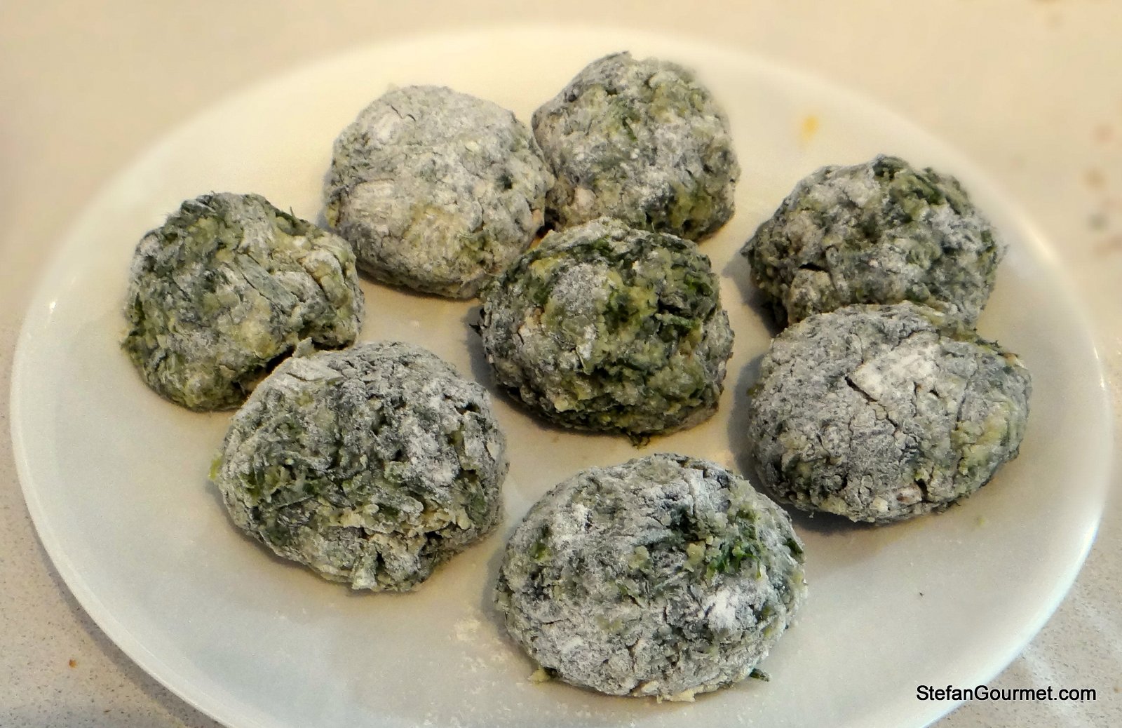 Shape the fennel mixture into 8 balls and dust them with flour.