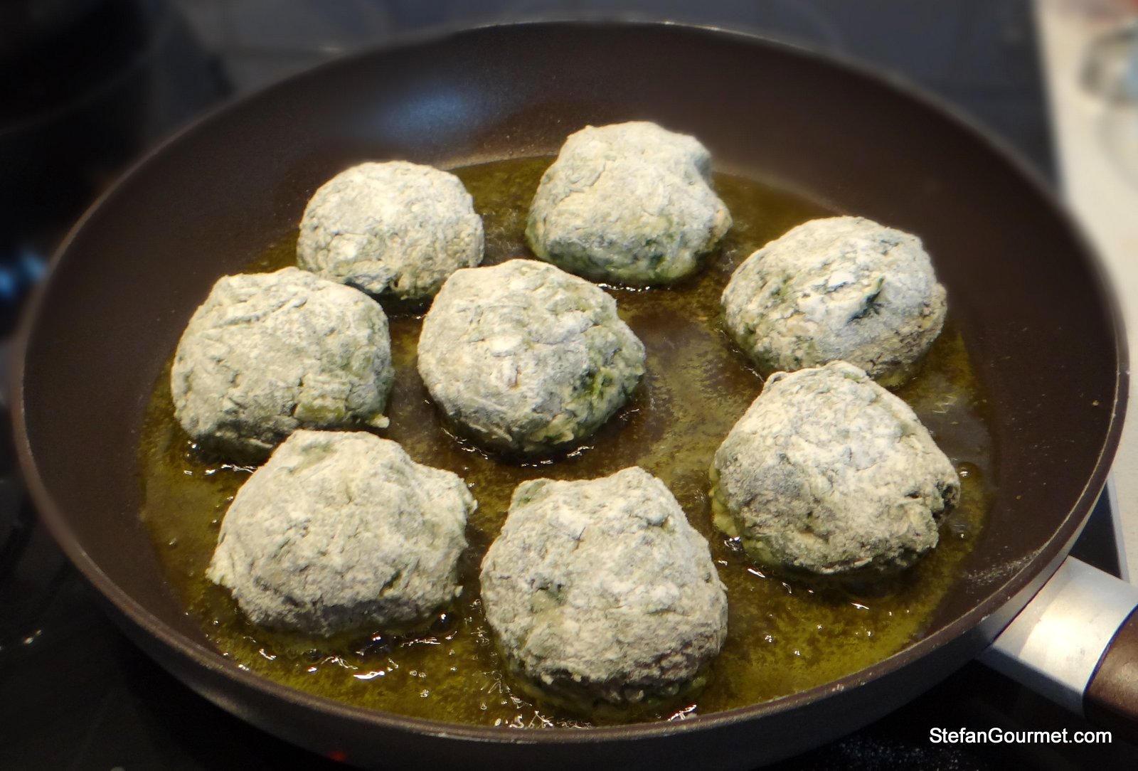 Cook the polpette in the hot oil until they are nicely browned on all sides.