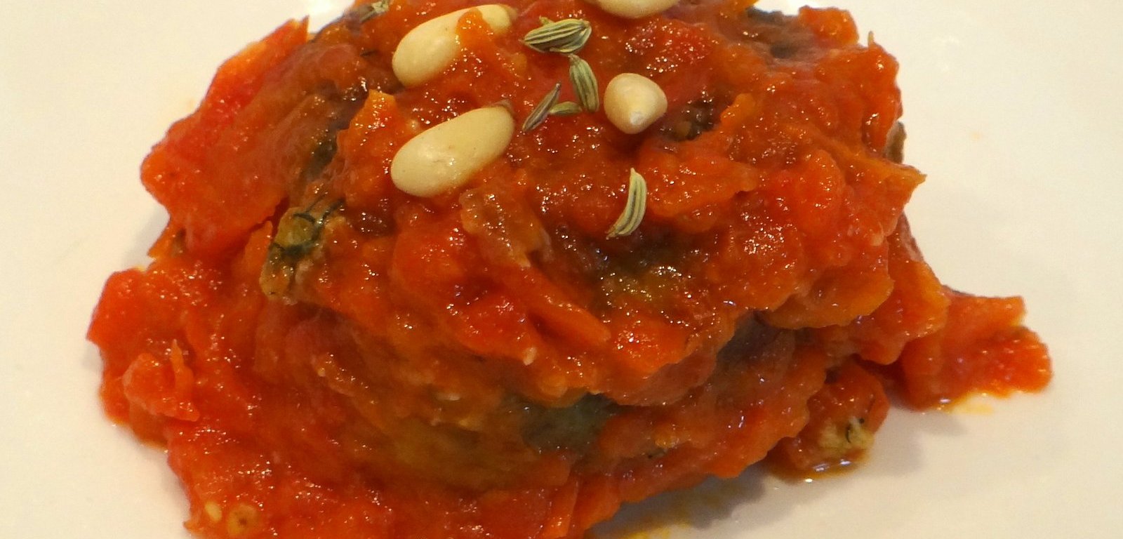 Serve the polpette with the tomato sauce, garnished with pine nuts and fennel seeds.