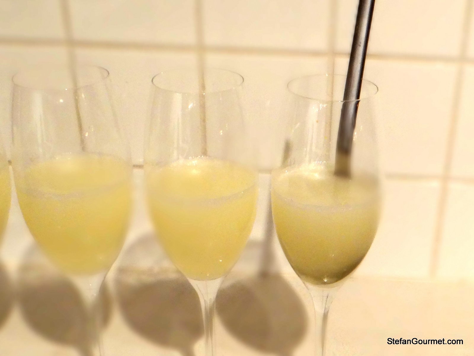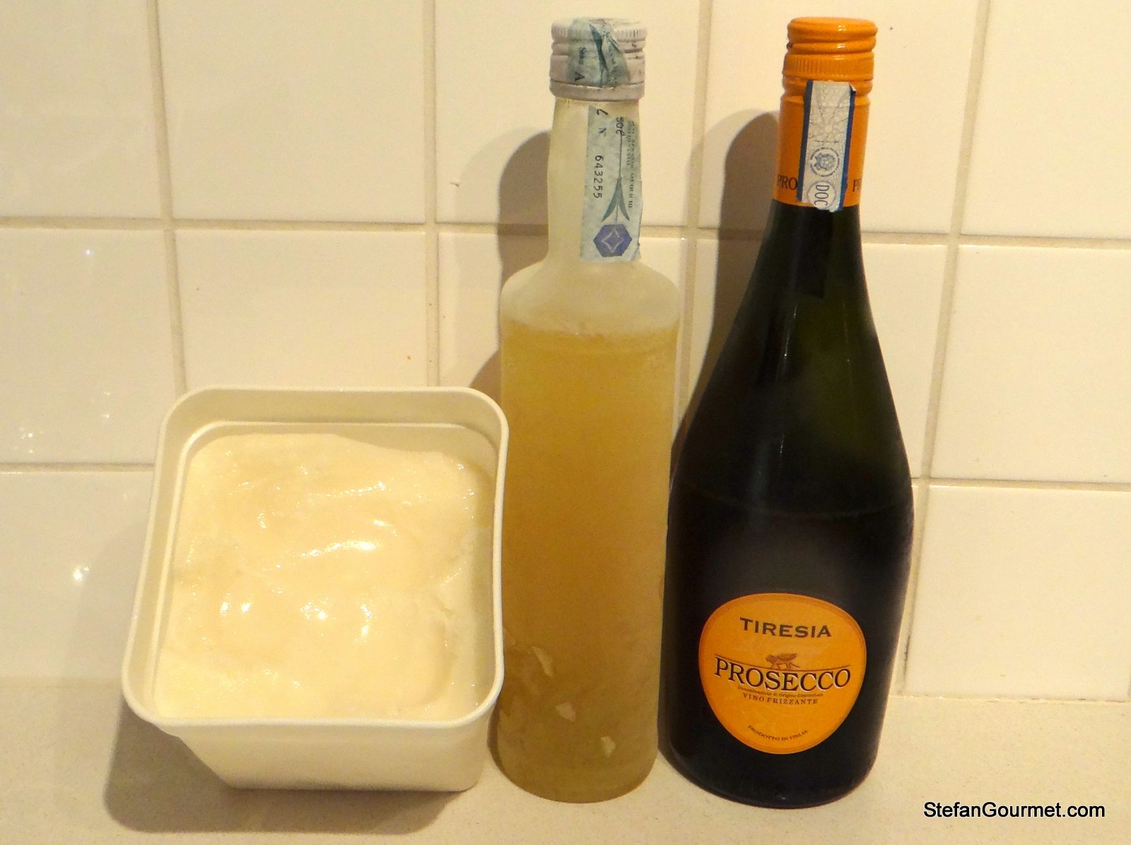 Sgroppino is a mixed drink from the Italian region of Veneto. The name has been derived from the word sgropìn, which in the local dialect means sorbet. A coworker introduced me to sgroppino in 2009, and I liked it at once. Sgroppini have a very fresh and light taste and are very nice to drink, especially in hot weather. Be careful as they may be too nice and you may not be aware how much alcohol they contain (about 15% by volume, depending on how strong you make them). Because they are so refreshing, sgroppini are great as a palate cleanser before dessert. If you don’t like heavy desserts, you could even serve just the sgroppini.