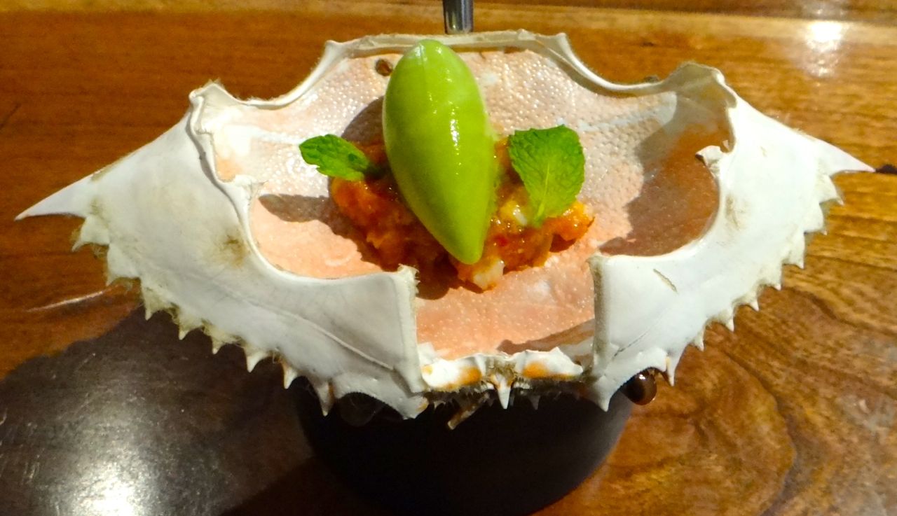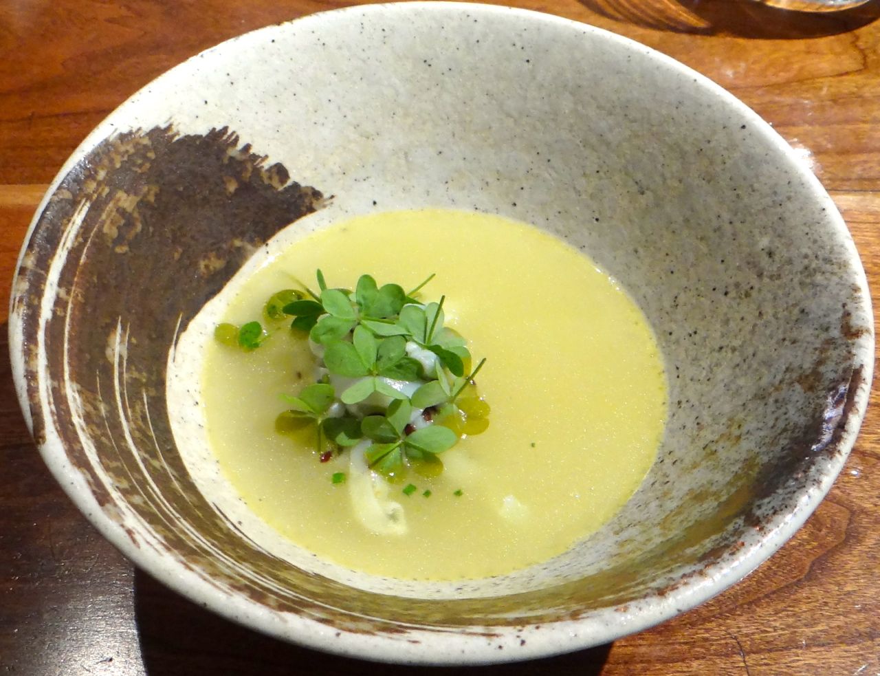 The first palate cleanser: blue swimmer crab with sorrel, kimchi and mint. The chef makes his own kimchi and this was very nice indeed.