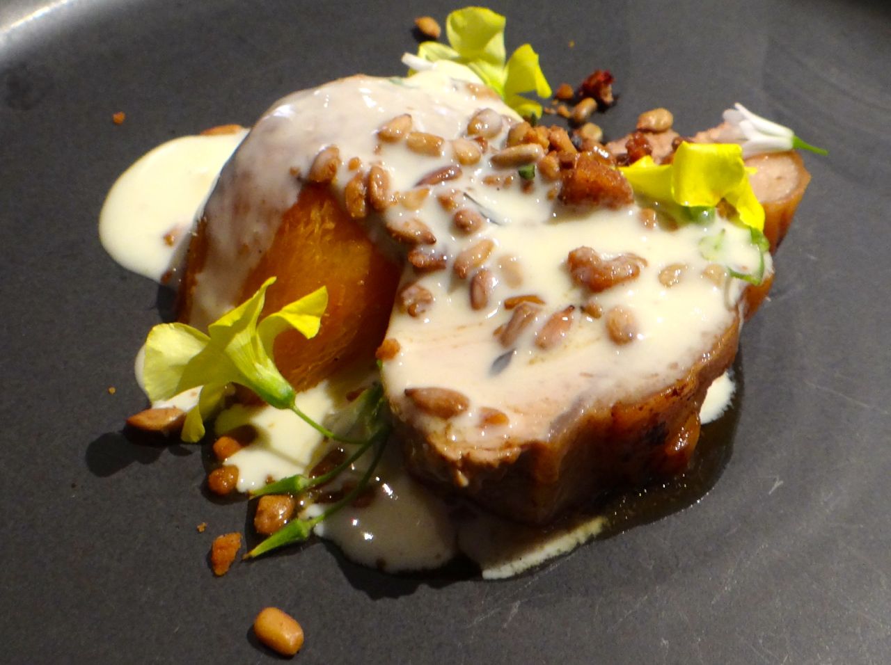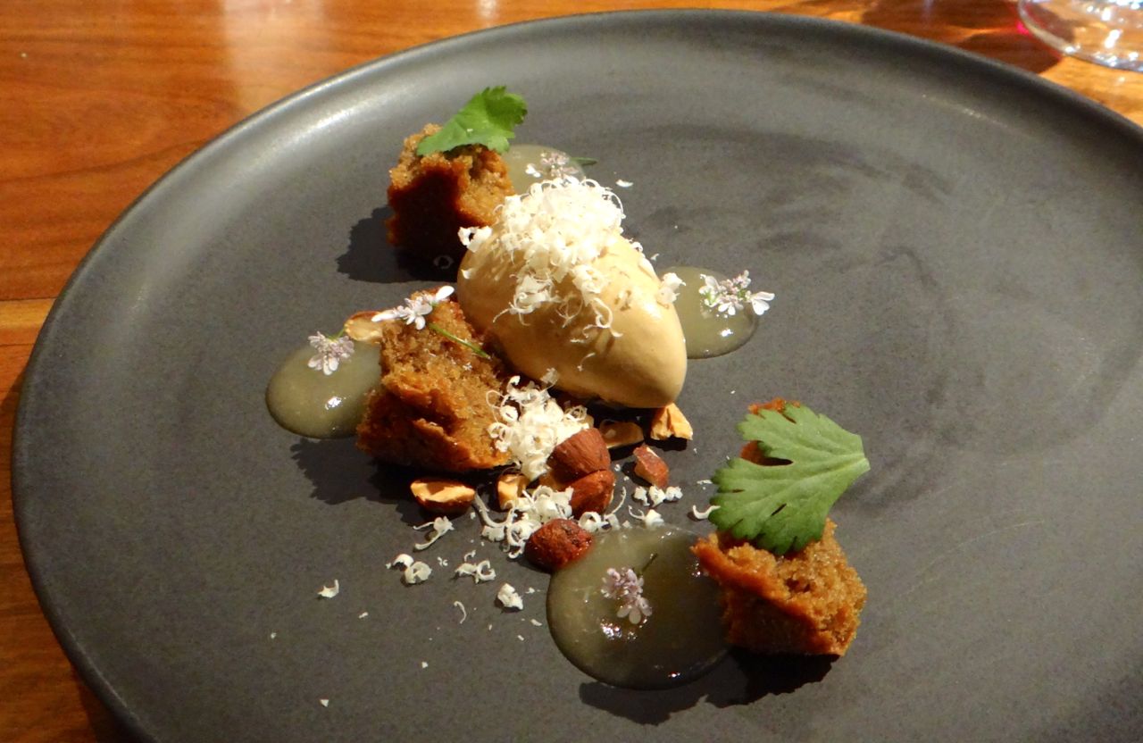 Pork (again cooked sous-vide) with swede, sunflower seeds, sherry and béchamel. I personally would have preferred an oaked buttery chardonnay with this, but Hentley doesn’t make such a wine and so they paired it with the 2008 Clos Otto Shiraz, their flagship wine. The wine was a bit too powerful for the dish, but it was still very enjoyable. 8/10