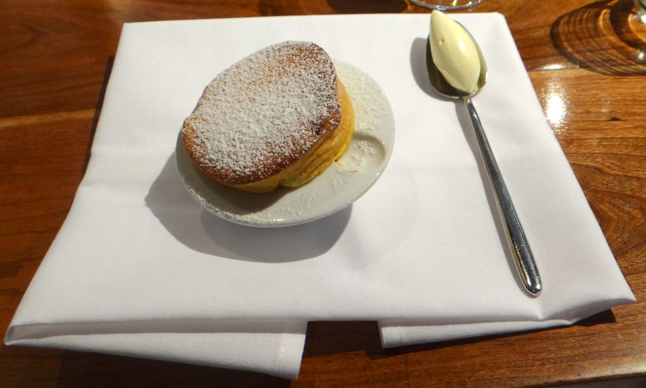 The second dessert was also very nice: a triple sec and mandarin souffle with jersey cream, paired with a 2011 botrytis riesling. 8/10