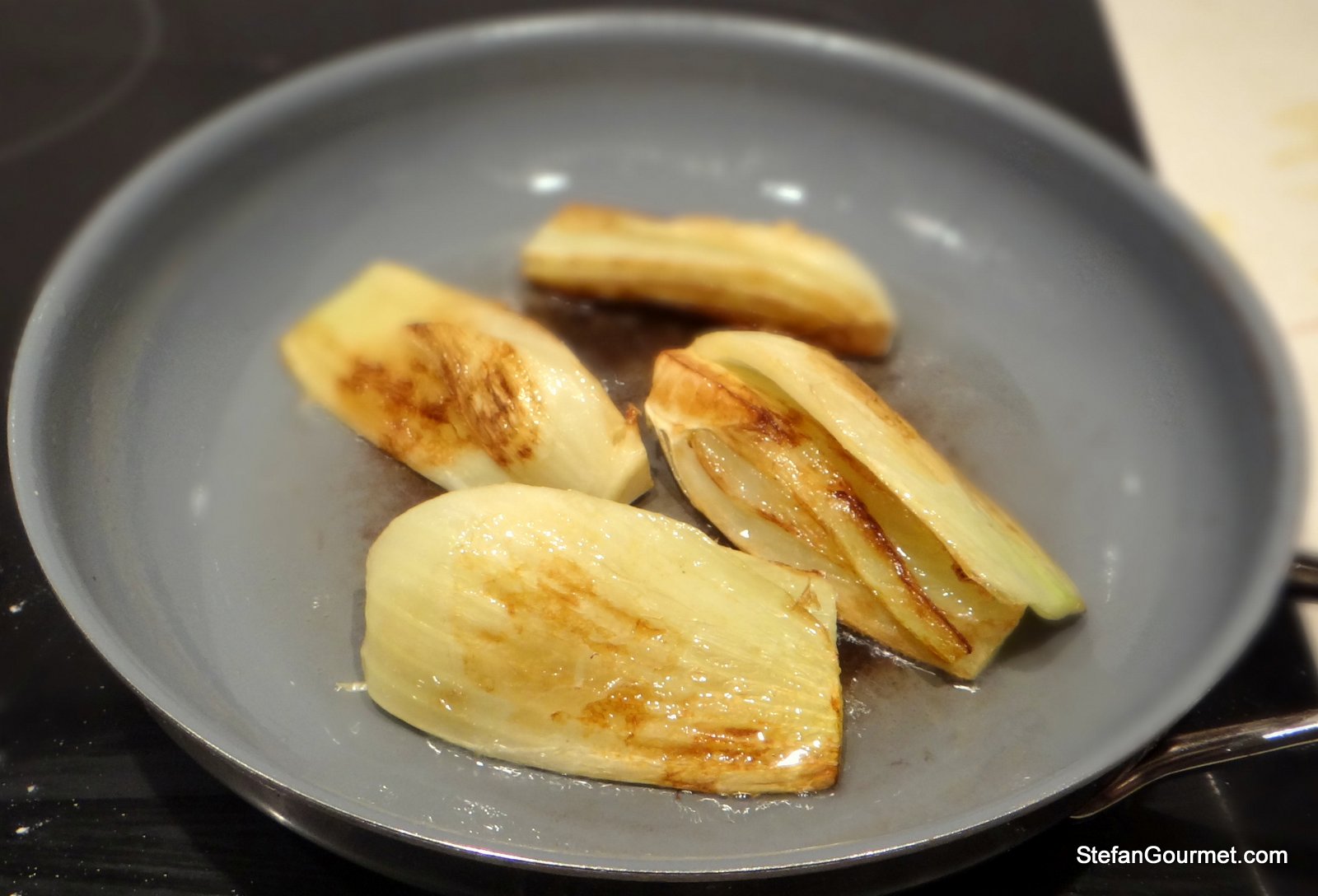 Brown the fennel in (clarified) butter over high heat on all sides.