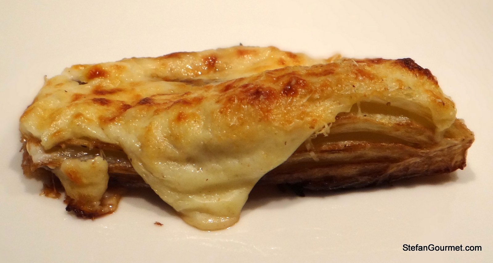 The fennel is first parboiled, then briefly browned in clarified butter, and then baked in the oven with bechamel and parmigiano. When I prepared this for the serata piemontese I forgot about the browning in clarified butter, and I only remembered while writing this post why it had tasted better when I made this for the first time (and took these photos). It accentuates the flavor of the fennel without exaggerating the ‘aniseed’ aspect of it. The browning is what takes this over the top, so don’t forget it like I did 😦