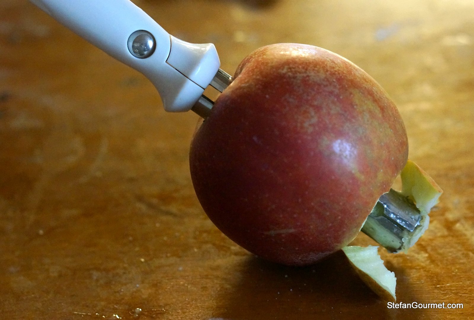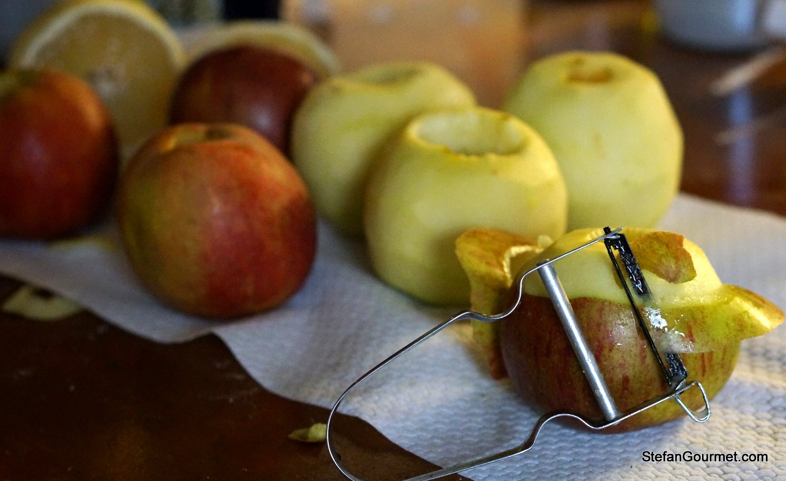 Cut each apple into four slices.