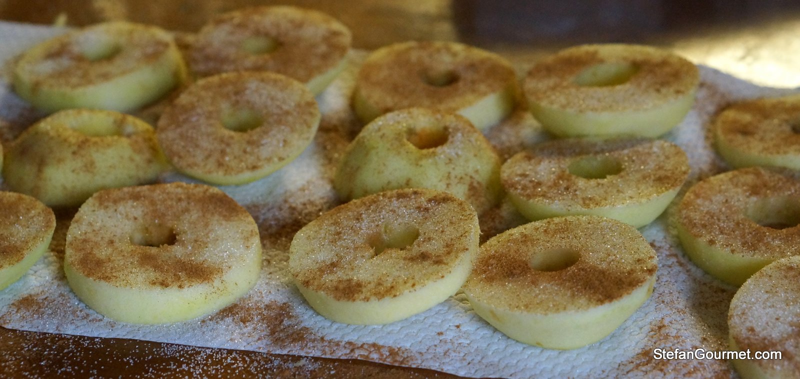Oh, gosh, these seem absolutely fabulous! A couple of weeks ago I ate fried apple slices here in Italy, but these seem very much better with the cinnamon. Now I hope it will be raining tomorrow…