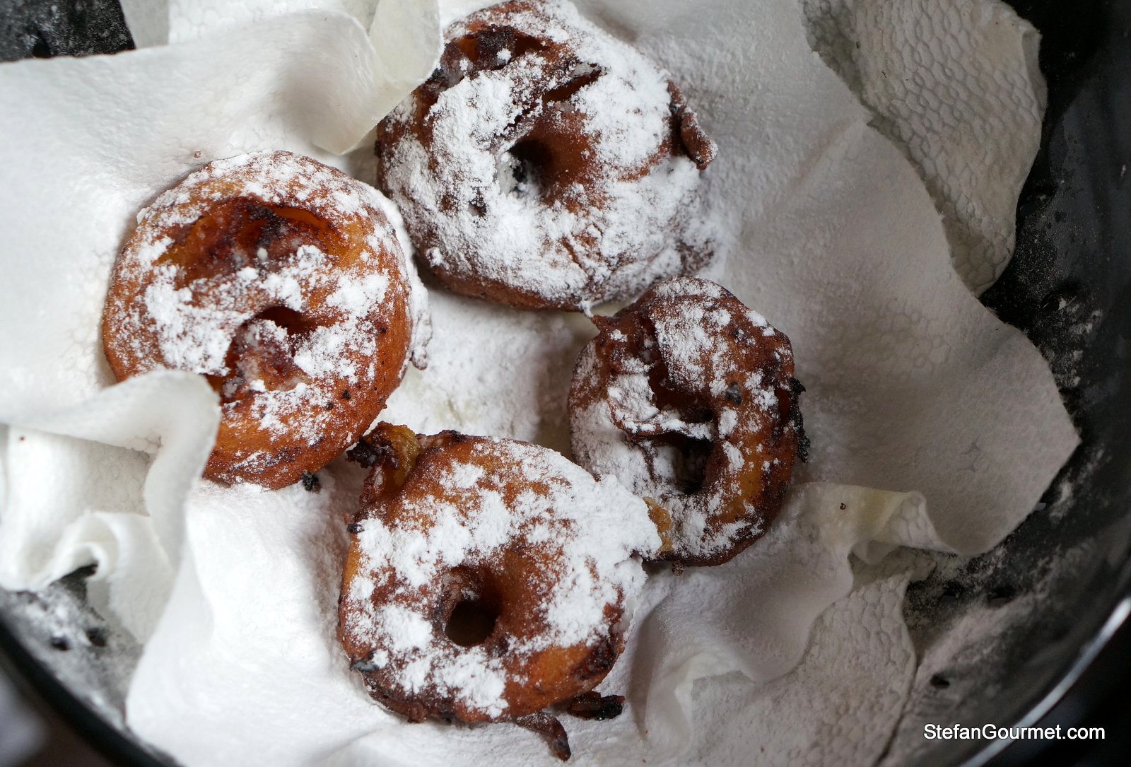 Allow to cool briefly in a colander covered with paper towels. Sprinkle generously with powdered sugar before serving.