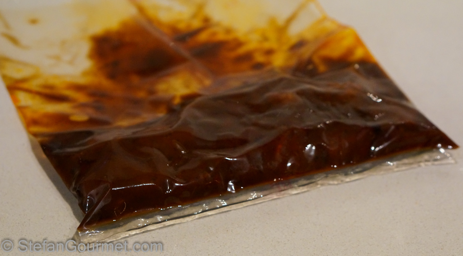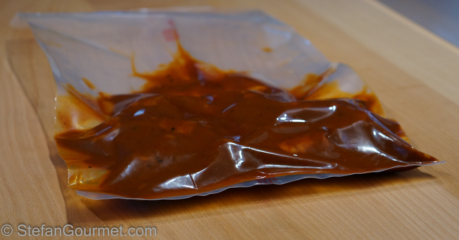 Vacuum seal the pork with the sauce. Use a ziploc bag and the water displacement method if you don’t have a chamber vacuum sealer.