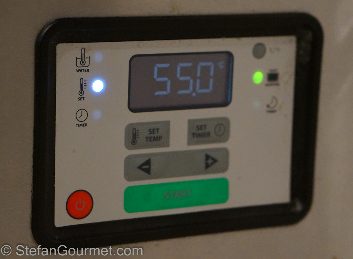 When it was dinner time, I set the water bath to 55ºC/131ºF to warm up the chicken breasts for 20 minutes or so, just enough to warm them through. This temperature will hardly ‘cook’ them any further.