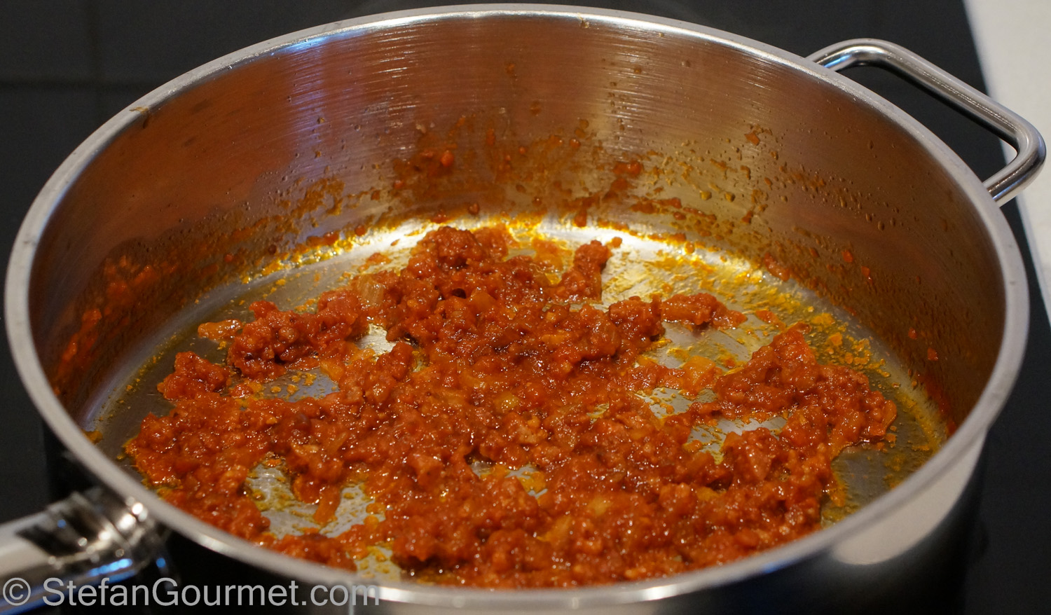 Simmer the sauce, stirring now and then, until it has a nice thick consistency.