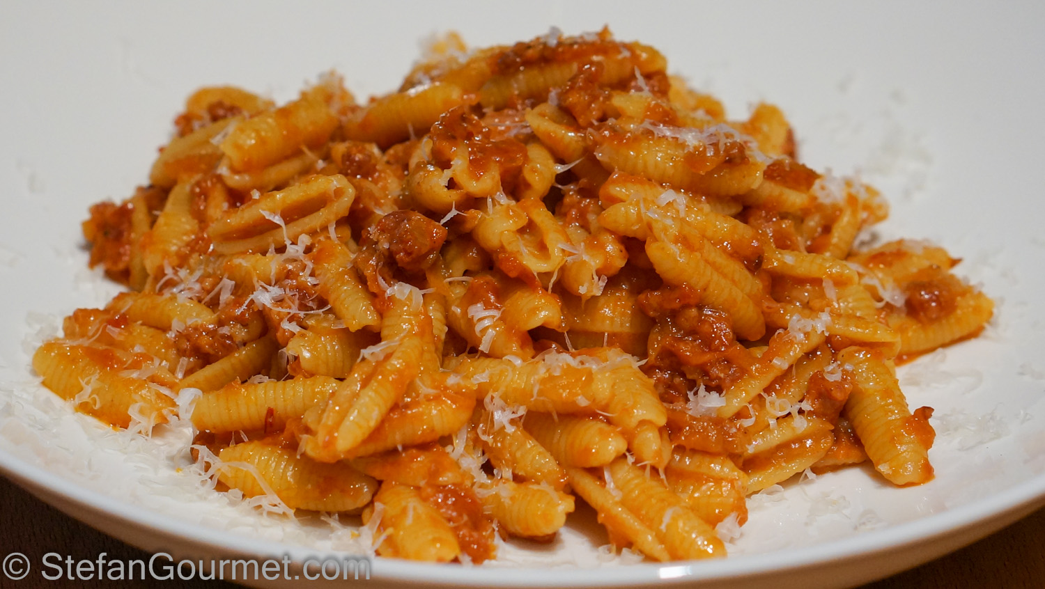 Malloreddus alla Campidanese (Sardinian Pasta with Tomato and Sausage)