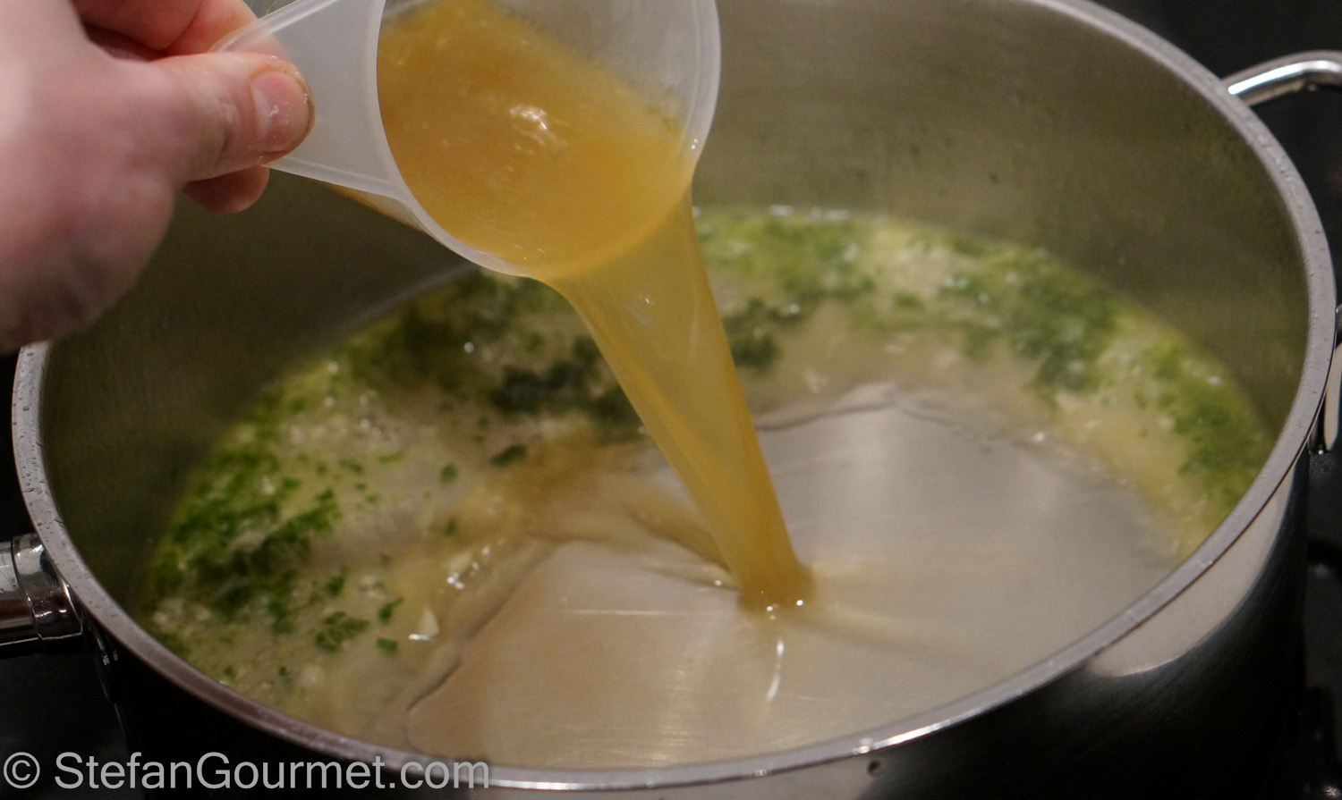 – Also, according to The Food Lab, alcohol will help carry aromas and even when boiling off alcohol, some is usually left behind in sauces. This suggests that this dish might be even tastier when adding the wine later on in the cooking process.