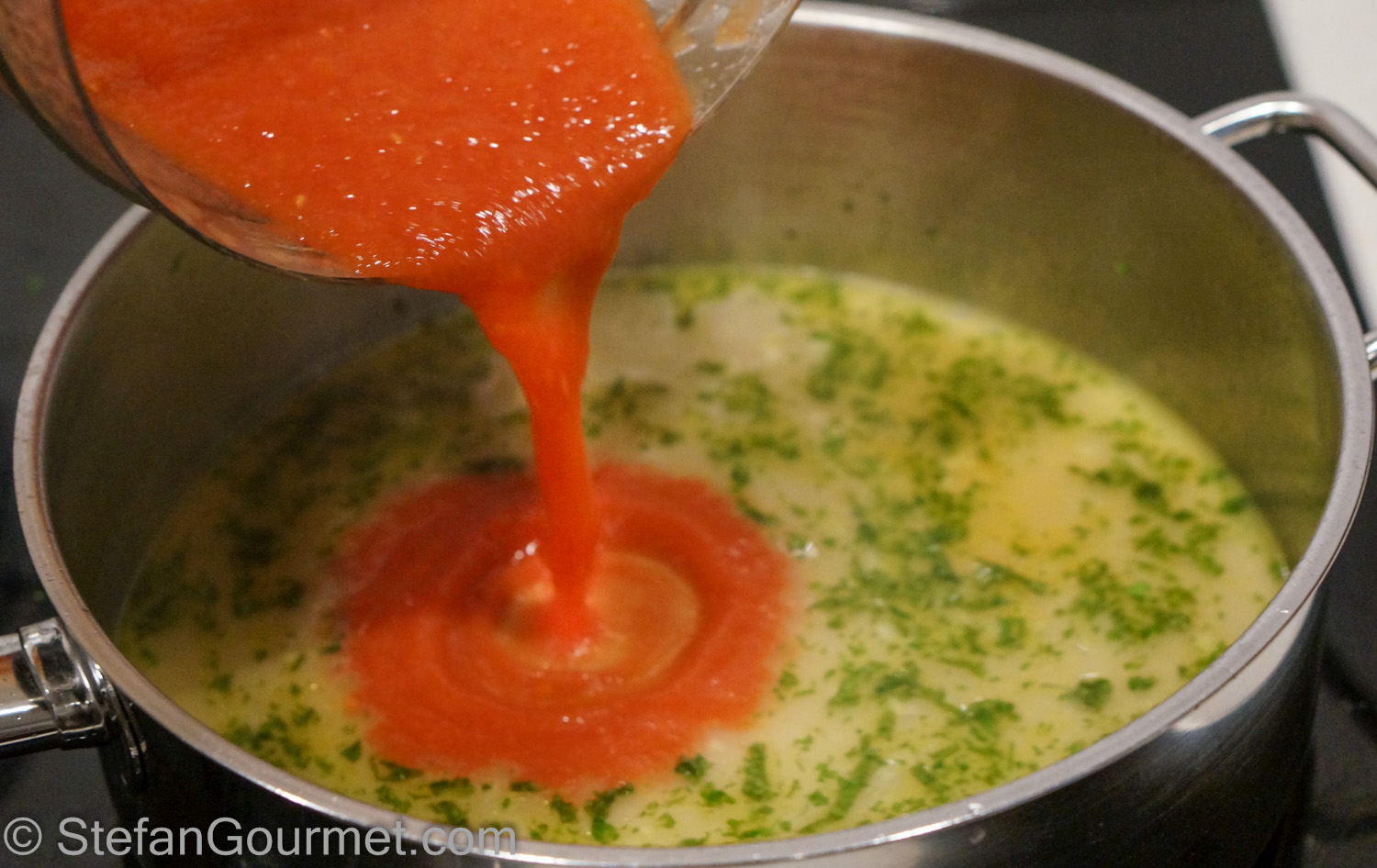 1/2 can (200 grams/7 oz) peeled tomatoes, pureed in the food processor