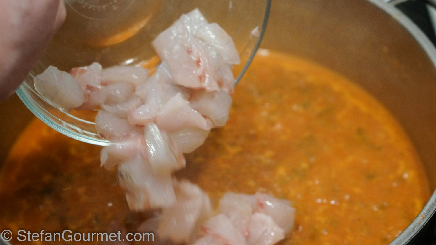 Important to this dish are the freshness of the fish, the lightness of the gnocchi, and not overcooking the fish. If you overcook the fish, it will fall apart and become dry. By turning off the heat and allowing the heat of the sauce to cook the fish, you prevent the fish from overcooking and it will remain juicy.