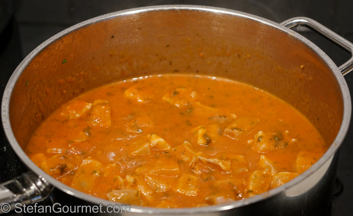 Bring to a boil, then cook over medium heat until the sauce has a nice consistency, about 5 minutes.