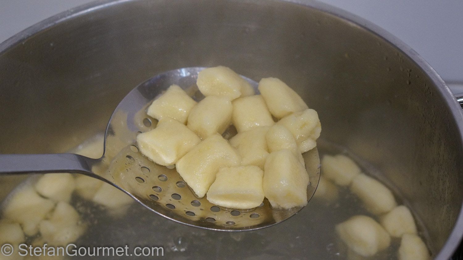 Remove the gnocchi from the pot with a slotted spoon as soon as they float…