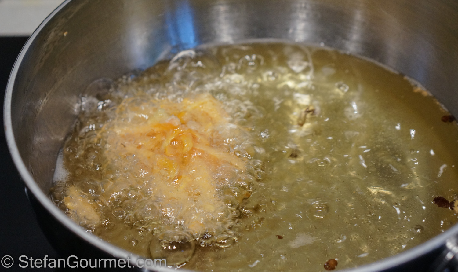 Heat up the oil to 180ºC/350ºF for deep frying.