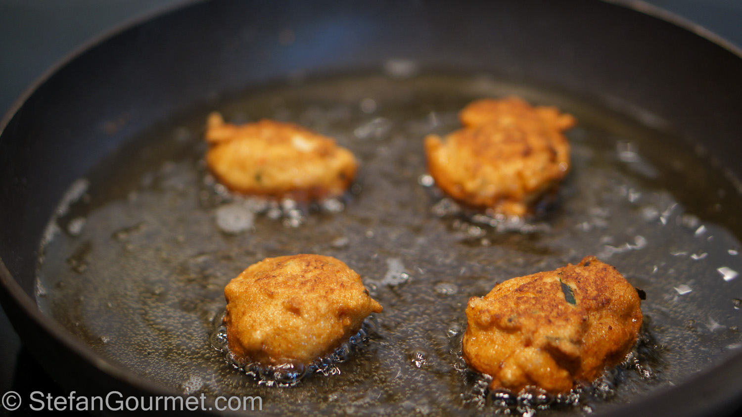 They kept their shape when I fried them. No ‘beard’ as happened with the fish paste made from pangasius.