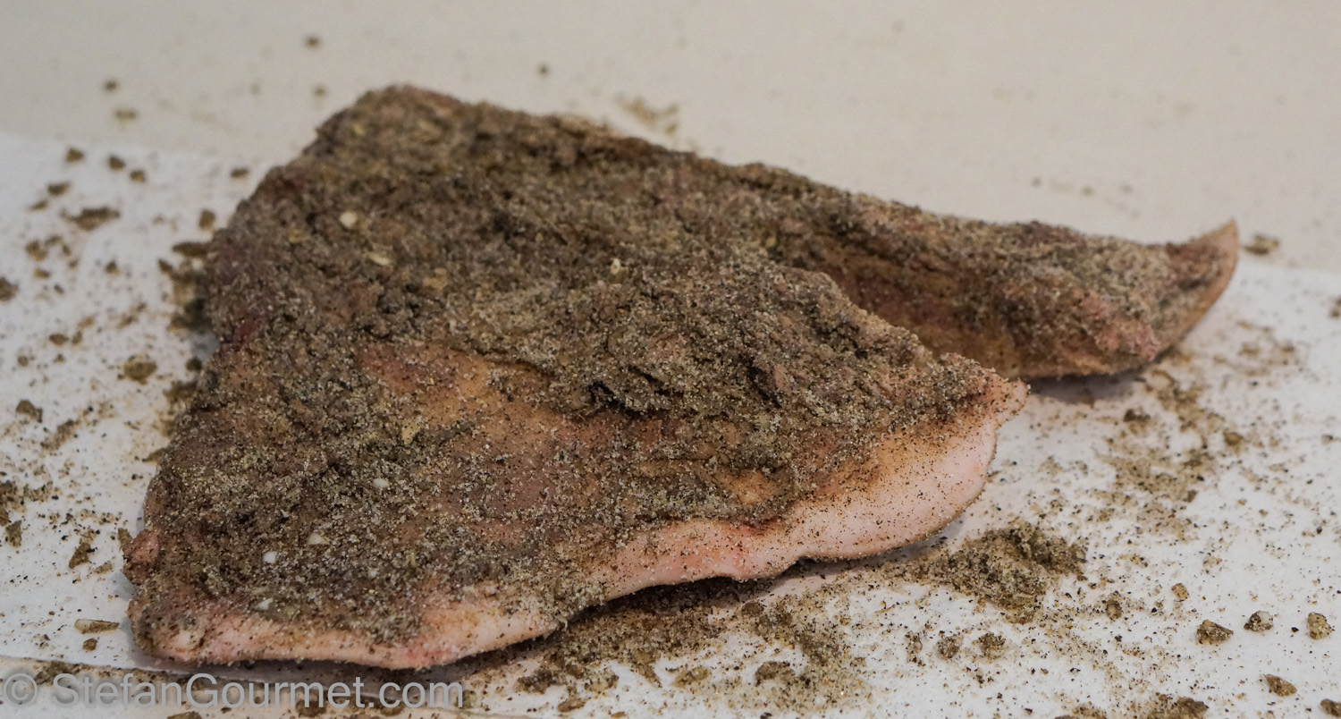 Rub all of the curing mix on the meat, making sure to rub it into all he nooks and crannies.